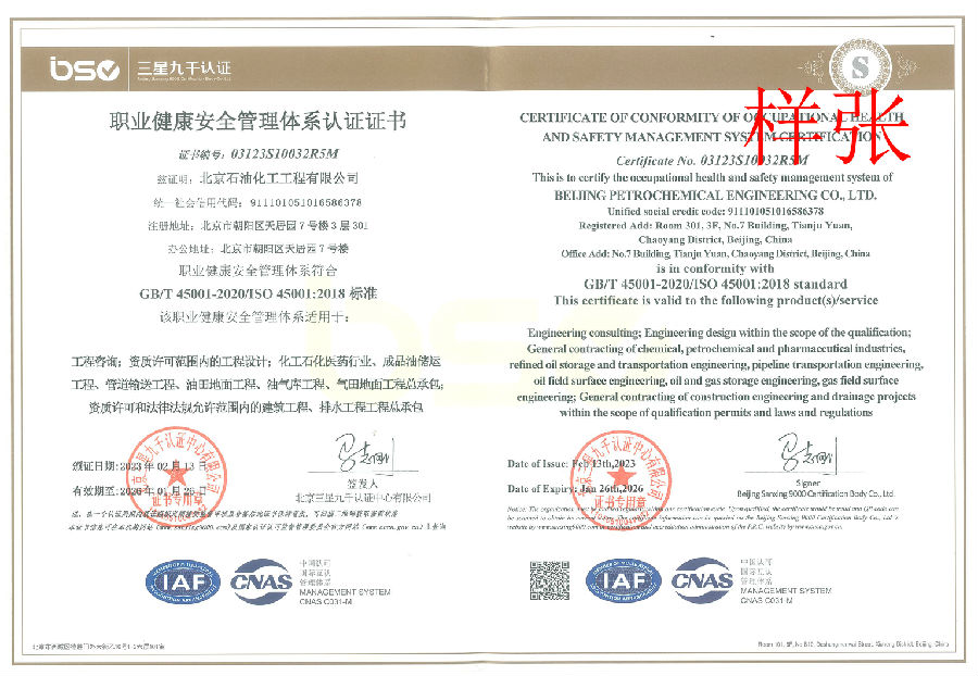 職業(yè)健康安全管理體系認(rèn)證證書(shū)