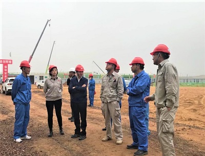 ??在中秋、國慶雙節(jié)前夕,北京石油化工工程有限公司黨委書記、董事長許緘濤到公司總承包的榆神能化50萬噸/年煤基乙醇項目現(xiàn)場慰問調(diào)研。公司董事、總經(jīng)理助理鄭薇,總經(jīng)理助理田平漢陪同調(diào)研。