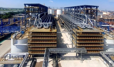 據(jù)悉,溶出稀釋裝置是A區(qū)最大、最復(fù)雜的工藝裝置,其中鋼結(jié)構(gòu)1970噸,管道近7000米,焊接近70000吋。特別是三芯夾套管和儲(chǔ)槽爆炸熱處理工藝復(fù)雜,難度較大,在項(xiàng)目組精心組織施工下,嚴(yán)格把控每個(gè)建設(shè)環(huán)節(jié),保證了各項(xiàng)監(jiān)檢一次檢測(cè)合格。