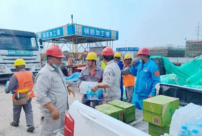 澆筑期間,正值高溫天氣,項(xiàng)目組采購(gòu)了飲料、礦泉水等防暑降溫慰問飲品,為堅(jiān)守一線的工人送去絲絲涼意,感謝他們的堅(jiān)守與付出。