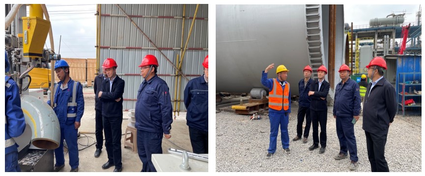 許緘濤還分別前往設(shè)備預(yù)制場、管道自動焊預(yù)制場,對最后一臺反應(yīng)器的制造進程、組裝塔器“穿衣戴帽”進程、管道預(yù)制自動焊等工作進行調(diào)研。