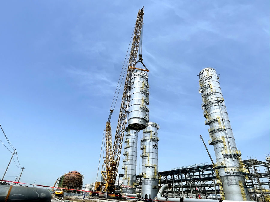 近日,由北京石油化工工程有限公司EPC總承包的安徽碳鑫科技有限公司甲醇綜合利用項(xiàng)目乙醇聯(lián)合裝置現(xiàn)場(chǎng)組裝塔器乙醇精制塔上塔上段交付并吊裝,塔器封頂大吉。