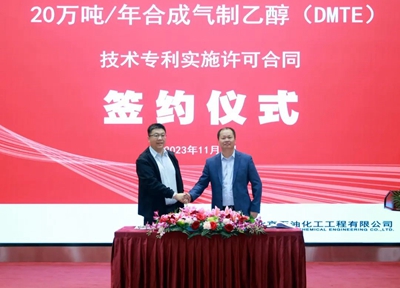 隨后,荊門源晗公司總經(jīng)理周虎,延長中科(大連)能源科技股份有限公司總經(jīng)理王輝代表雙方簽署了20萬噸/年合成氣制乙醇(DMTE)技術(shù)專利實(shí)施許可合同并分別致辭。簽約儀式結(jié)束后,召開了項(xiàng)目設(shè)計開工會,與會人員對設(shè)計方案進(jìn)行了深入交流。