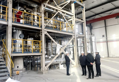 調(diào)研座談會(huì)前,許緘濤、田偉一行來(lái)到生產(chǎn)區(qū)和中央控制室進(jìn)行了參觀交流,深入了解了公司生產(chǎn)運(yùn)行、產(chǎn)品特性、主要裝置性能等情況。