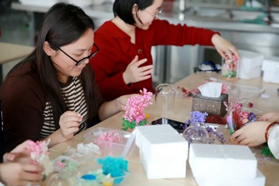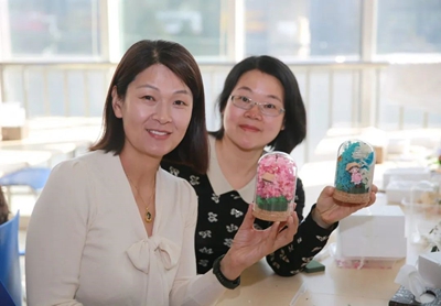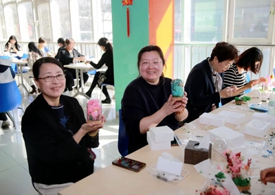 為增強(qiáng)慶;顒拥娜の缎、挑戰(zhàn)性、協(xié)作性,組織開展手工制作“永生花”體驗活動;顒又,工作人員提前將材料進(jìn)行分類準(zhǔn)備好,并詳細(xì)講解“永生花”的制作流程和技巧。大家邊學(xué)邊交流經(jīng)驗,以塑刀為針,以膠水為線,紛紛動起手來,傾力展示自己豐富的想象力和創(chuàng)造力,將工作中的細(xì)心、專心、耐心投入到“永生花”的制作上。經(jīng)過個把小時,女職工們制作出了一朵朵精美的“永生花”,看著自己親手制作的作品,大家臉上洋溢著滿滿的成就感和幸福感。火熱的氛圍,也將此次“三八”節(jié)活動推向了高潮。
