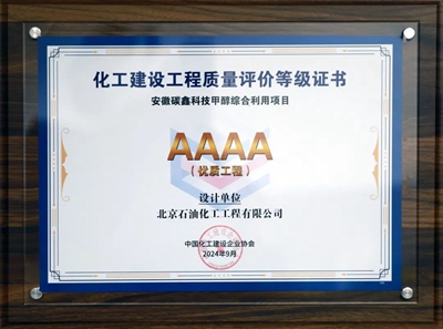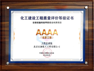 近日,由北京石油化工工程有限公司(簡稱:北油工程)總承包的安徽碳鑫科技甲醇綜合利用項(xiàng)目乙醇聯(lián)合裝置,獲得2024年度,中國化工建設(shè)企業(yè)協(xié)會(huì)組織評(píng)選的化工建設(shè)工程質(zhì)量總承包優(yōu)質(zhì)工程和設(shè)計(jì)單位優(yōu)質(zhì)工程。