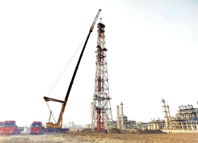 據(jù)悉,該火炬高80米,總重100噸,分三段在地面組裝后依次進行吊裝。為確保吊裝工作的順利進行,項目部組織業(yè)主、監(jiān)理、承包商對火炬組裝的質(zhì)量及組裝臨時平臺的搭設(shè)情況進行全方位檢查,吊裝過程中,項目人員嚴格按照操作規(guī)程執(zhí)行,確保吊裝作業(yè)的安全、平穩(wěn)。目前,施工人員正加緊配套地面火炬管廊、附屬設(shè)備等相關(guān)工作,加班加點確;鹁姘雌谕队。