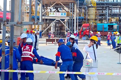 從事故發(fā)生到傷員轉(zhuǎn)移至救護(hù)車,全程僅耗時(shí)17分鐘,較預(yù)定救援時(shí)間提前3分鐘。此次演練全面檢驗(yàn)了應(yīng)急預(yù)案的實(shí)戰(zhàn)效能,為后續(xù)標(biāo)準(zhǔn)化作業(yè)流程優(yōu)化提供了重要數(shù)據(jù)支撐。目前,該項(xiàng)目已累計(jì)實(shí)現(xiàn)220萬安全人工時(shí),總體進(jìn)度達(dá)88.7%,剩余工程將重點(diǎn)進(jìn)行4臺(tái)LNG儲(chǔ)罐充水試驗(yàn)、壓縮機(jī)“油運(yùn)”、管道試壓及保冷收尾作業(yè)。(通訊員/艾延波 圖/艾延波)