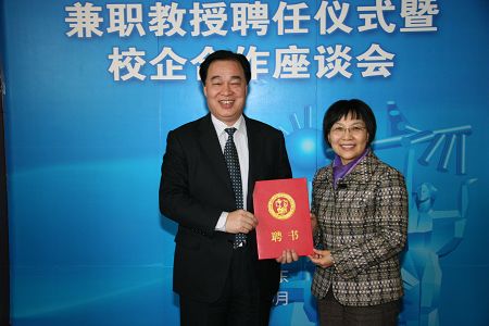 座談會(huì)上,中國(guó)石油大學(xué)(華東)校長(zhǎng)山紅紅對(duì)總經(jīng)理張積耀一行的到來表示歡迎,簡(jiǎn)要介紹了學(xué)校近幾年來的發(fā)展,并向張積耀總經(jīng)理頒發(fā)了兼職教授聘書。