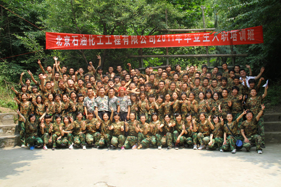 “我有無限潛能,我為成功而來;勇敢面對每一次挑戰(zhàn),提升自我,超越自我;相信自己,更信任伙伴;尊重自我,更敬重他人;時刻與團(tuán)隊在一起,因團(tuán)隊有我而自豪……”,7月13日,在宏亮的營訓(xùn)宣誓中,拉開了北京工程公司2011年畢業(yè)生素質(zhì)拓展訓(xùn)練的帷幕。此次拓展訓(xùn)練歷時兩天,共分為三個主題:挑戰(zhàn)、協(xié)作和團(tuán)隊。