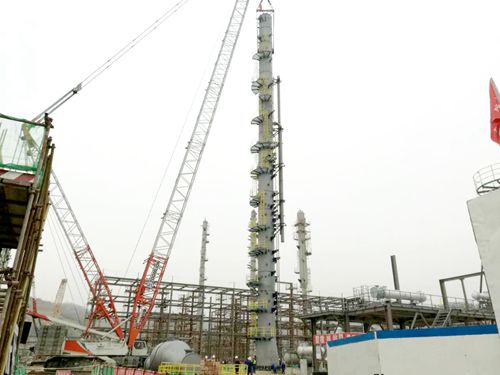 據(jù)悉,C-311全稱堿洗/水洗塔,高62.91m,重104.5噸。該設(shè)備為工藝設(shè)備中較為核心的設(shè)備之一,在整體生產(chǎn)過(guò)程主要起到酸性氣體脫除功能。ACO項(xiàng)目自2016年5月12日開工以來(lái),克服了場(chǎng)地沉降、轉(zhuǎn)化器訂貨決策、E-102訂貨決策、原料變更決策(影響汽油加氫單元設(shè)計(jì)進(jìn)程)、環(huán)評(píng)變更決策(增加脫硫系統(tǒng))等因素,同時(shí),較其他工藝裝置晚開工3-6個(gè)月,造成一定程度的設(shè)計(jì)、采購(gòu)滯后。面對(duì)困難,ACO項(xiàng)目組迎難而上,于2016年12月底前實(shí)現(xiàn)了土建整體糾偏的總體控制目標(biāo),為2017年進(jìn)入安裝年創(chuàng)造較好條件。