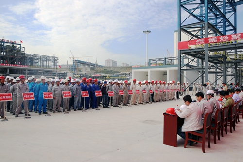 大會現(xiàn)場,公司董事長在表態(tài)發(fā)言中確立三點(diǎn)目標(biāo),一是入冬前完成高中壓蒸汽管線的吹掃工作和所有機(jī)組單機(jī)試車,加快完成所有具備條件的烘爐、烘襯工作;二是乙丙橡膠裝置完成全部土建和60%安裝工程,其他裝置完成全部的實物工作量;三是硫回收、PP、PE、甲醇、2PH裝置及公輔設(shè)施年底具備中交條件,其余裝置力爭具備中交條件。